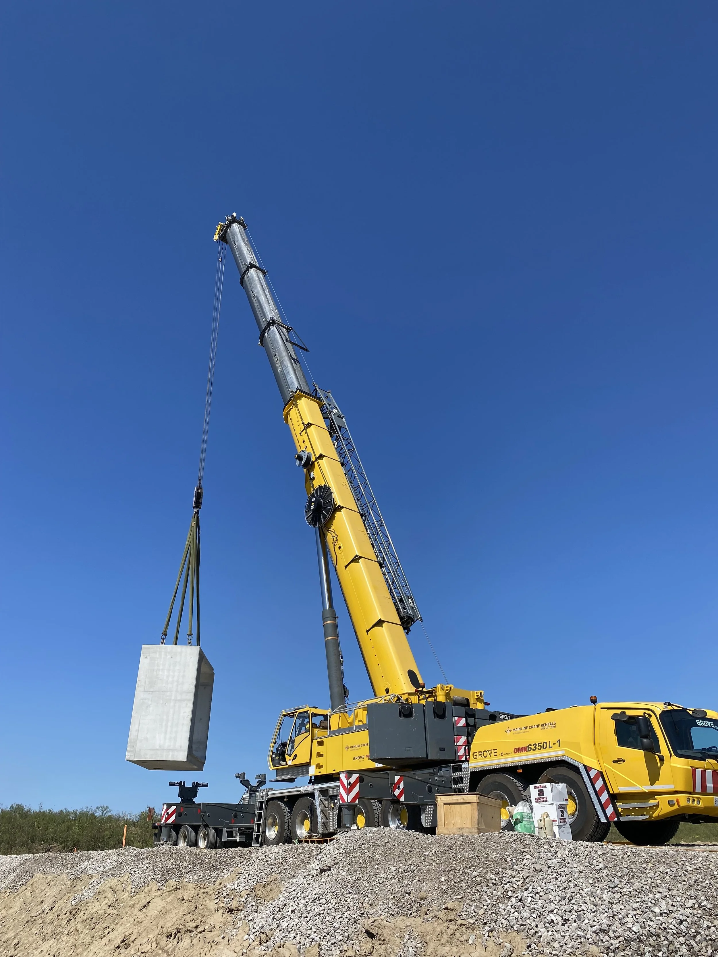 Our 165-ton crane offloading and setting a pre-cast structure, and then demobilizing the crane.
