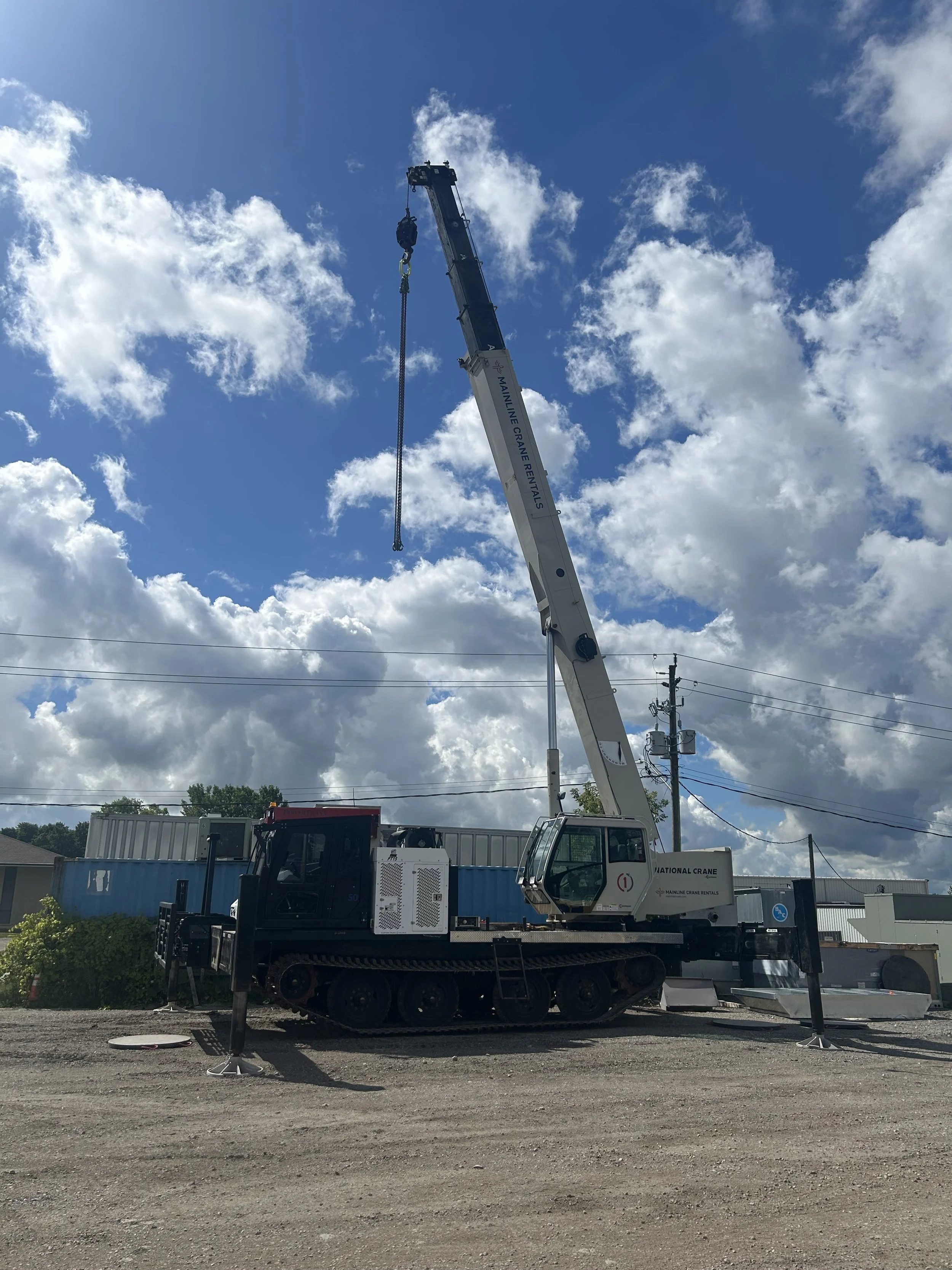 The National NBT40142 on a PowerTraxx PT15 carrier is a 40-ton track boom truck boasting a 173-ft total boom. Compact, stable, and built for tough terrain, this crawler crane is designed to go where other cranes can’t. With rubber tracks and impressive reach, it navigates soft or uneven ground with ease. Ideal for powerline and utility work, it excels in pinned man-basket applications and maintenance lifts where access and precision matter most.